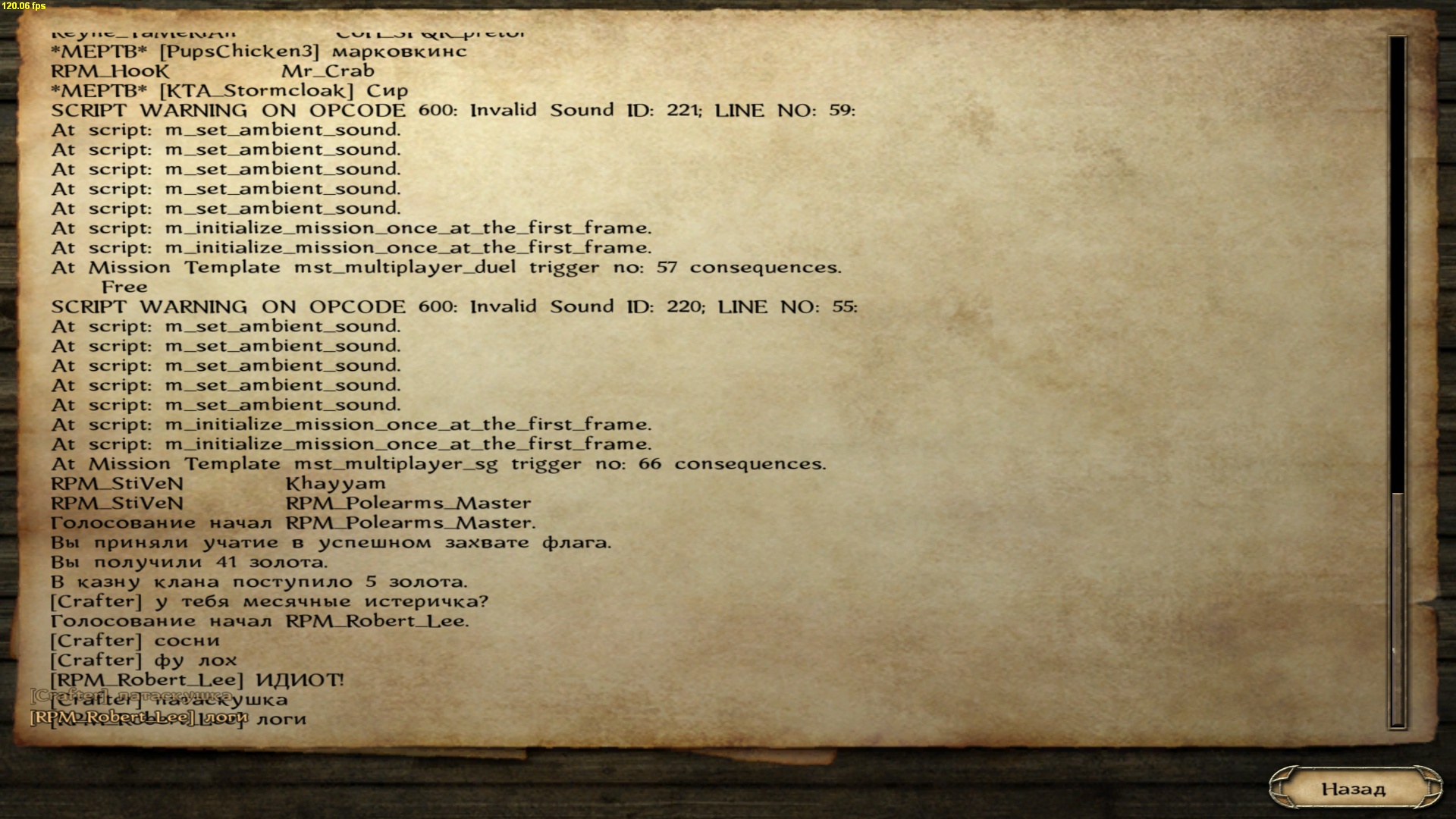 | Подделывать логи под себя, обрезать логи с целью введения администрации в заблуждения СТРОГО ЗАПРЕЩЕНО! В случае нарушения - предупреждения в профиль Портала.При рецидиве - бан на 3 дня. |